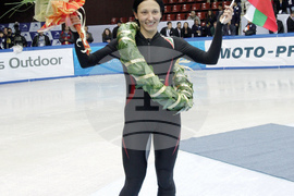 На снимката: София (21 март 2010) С бенефис в Зимния дворец на спорта в София, където се провежда Световното първенство по шорттрек за мъже и жени, Евгения Раданова слага край на 22-годишната си спортна кариера. Пресфото-БТА снимка: Петър Кръстев/архив