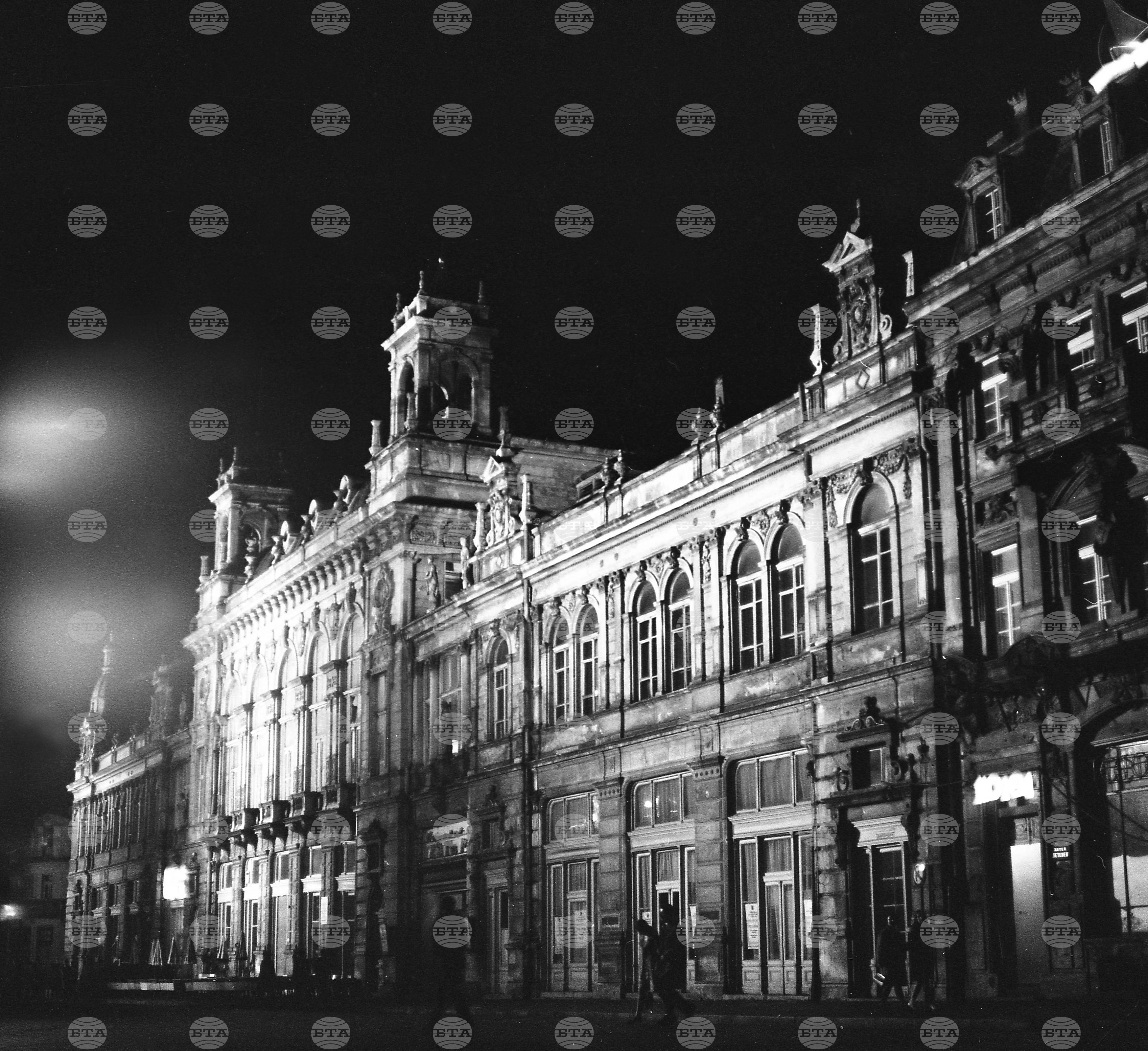 На снимката: Нощен изглед от центъра на Русе, Доходно здание - 1971 година.
