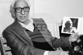 На снимката: София (26 октомври 1988) Найден Петков по време време на аранжирането на юбилейната му изложба. Пресфото-БТА снимка: Божидар Тодоров/Архив