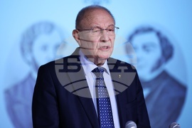 На снимката: София (11 януари 2022) Проф. Кирил Топалов в зала "МаксиМ" на Мултимедийния център на БТА на представянето на фототипно издание на сборника на братя Миладинови от 1861 г. "Български народни песни" и "Събрани съчинения" по повод 160-тата годишнина от смъртта на братя Миладинови. Организатори на събитието са БТА и издателство "Български бестселър - Национален музей на българската книга и полиграфия". Пресфото – БТА снимка: Минко Чернев/Архив