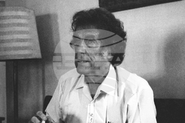 На снимката: Непал (26 май 1984) Едмънд Хилари - първият човек, покорил връх Еверест заедно с шерпа Тенсинг Норгей, дава автограф за БТА по време на пресконференция във връзка с експедицията "Еверест 84" на българските алпинисти. Пресфото-БТА, снимка: Любомир Касаветов/Архив