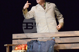 На снимката: Кърджали (20 март 2013) Почитателите на театралното изкуство се насладиха на играта на актьора Николай Урумов в моноспектакъла "Лалугер", който е представен на сцената на Драматичен театър "Димитър Димов" в града. Режисьор – Юрий Дачев. Спектакълът е по книгата на Александър Урумов "Приказки в края на времето" и е копродукцията на Драматичен театър "Йордан Йовков" - Добрич, и Театър "Българска армия". Пресфото - БТА снимка: Петко Борисов/Архив