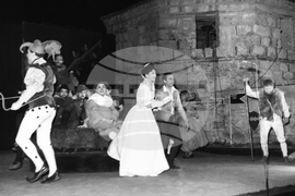 На снимката: (5 юли 1964) Един от вътрешните дворове на крепостта. Репетиция на пиесата „Както ви се харесва“. Снимка: Симеон Ненов/Архив БТА