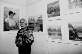 На снимката: София (1 март 1994) Художникът Теньо Желев сред картините си на юбилейната изложба на художника по повод неговата 70-годишнина, открита в галерията на ул."Шипка" 6.