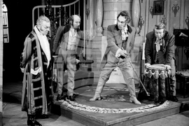 На снимката: София (23 декември 1953) Михаил Джунов в ролята на съдията в пиесата „Ревизор“.