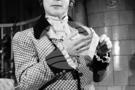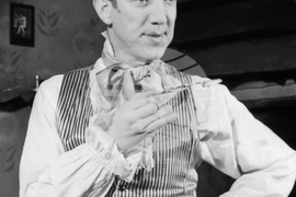 На снимката: София (23 декември 1953) Артистът Асен Миланов в ролята на Хлестаков в комедията „Ревизор“.