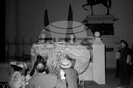 София (31 януари 1965) Премиера в Народния театър „Иван Вазов“ на комедията в две действия „Службогонци“ от Иван Вазов. Постановка на Филип Филипов. Асистент-режисьор Любен Морчев. Режисьор-педагог - Константин Кисимов. Декори и костюми - Стефан Савов. Композитор - Симеон Пиронков. Постановка на танците - Фео Мустакова. Карикатурите в програмата са дело на Теню Пиндарев. На снимката: Сцена от първо действие. Пресфото-БТА, снимка: Виолета Попова/архив