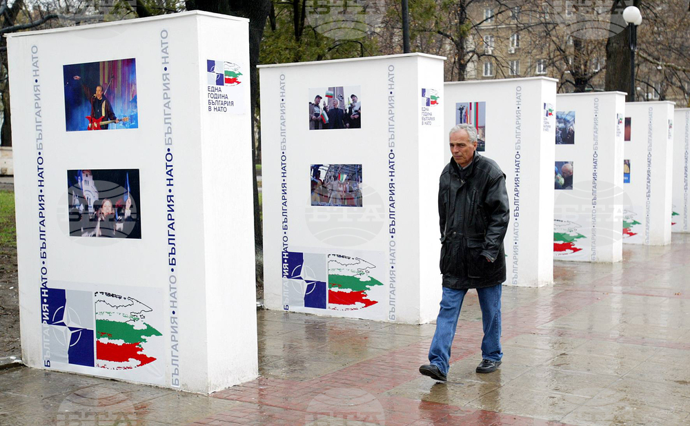 София (29 март 2005) В градинката пред Народния театър "Иван Вазов", Министерство на външните работи със съдействието на БТА организира фотоизложба включваща фотоси свързани с атлантическата идея, по повод 1 година от приемането на България в НАТО. Пресфото-БТА, снимка: Елена Дикова