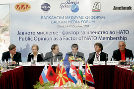 Охрид (16 октомври 2007) През втория ден на Балканския медиен форум темата е "Общественото мнение като фактор за членството в НАТО", организиран от Българската телеграфна агенция (БТА) съвместно с Македонската информационна агенция (МИА) и в партньорство с местни медии - телевизия А1 и в."Дневник". Участниците обсъждат въпроса за това как и къде се водят дебатите за НАТО в държавите-членки на програмата Партньорство за мир и в държавите-кандидатки за членство.