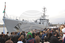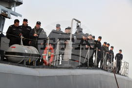 Бургас (4 юни 2011) Фрегата „Дръзки”, която се завърна във военноморска база Бургас от операцията на НАТО „Обединен защитник”, бе тържествено посрещната от заместник-министър на отбраната Августина Цветкова и висши военни от Военноморските сили. Сред посрещачите бяха близки и роднини на екипажа на „Дръзки”. Пресфото-БТА, снимка: Тодор Ставрев