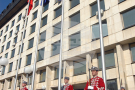 София (2 април 2004) На площад "Независимост" в столицата се състоя официалната церемония по издигането на националния флаг на Република България и на знамената на другите шест държави-новоприети членки на НАТО.