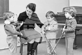 София (6 февруари 1979) Средно музикално училище "Любомир Пипков" – по време на урок. БТА, снимка: Живко Ангелов/архив