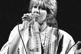 На снимката: София (16 декември 1986) Изпълнение на Петя Буюклиева на благотворителен концерт в зала 1 на НДК под надслова: „Да бъде ден, да има мир и песен“. Приходите от концерта ще бъдат внесени във фонда за пострадалите от земетресението в Стражица.
