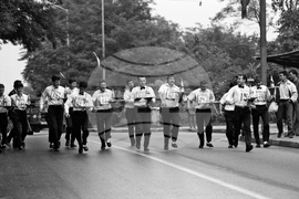 На снимката: София (11 септември 1989) Сервитьори от много столични заведения участват в първия в България маратон за сервитьори.