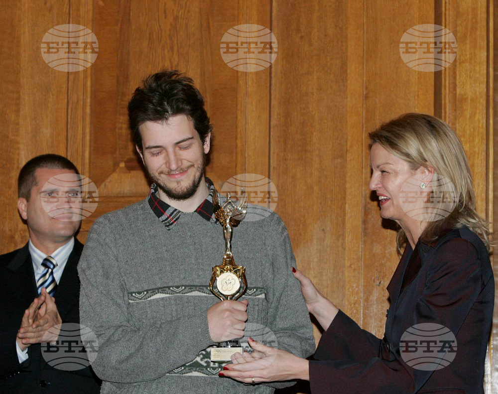 На снимката: София (13 декември 2005) В Министерство на отбраната са наградени десетте най-добри армейски спортисти за 2005 година. Председателят на Българския олимпийски комитет Стефка Костадинова връчва специалната награда на шахматиста Веселин Георгиев - световен шампион за хора с увреждания. Пресфото-БТА, снимка: Тихомир Пенов/архив