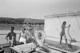 На снимката: река Дунав (17 август 1953) На палубата на пътническия речен кораб "Георги Димитров". Пресфото-БТА, снимка: Георги Викентиев/архив (ПГ)