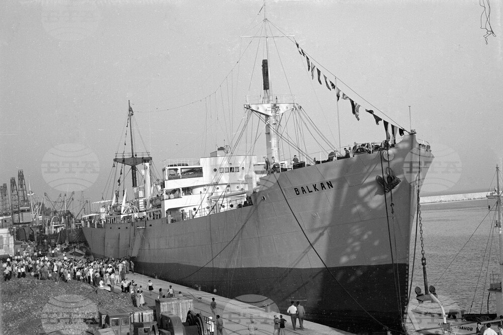 На снимката: Варна (30 август 1956) Корабът "Балкан" на пристанище Варна в деня на пристигането.