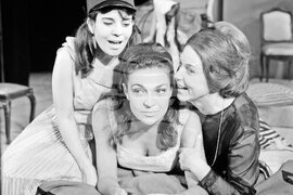 На снимката: София (19 октомври 1967) Мария Русалиева (вляво), Емилия Радева (вдясно) в сцена от постановката „Времето и семейство Конуей“ на сцената на театър „Народна армия“ (дн. Tеатър "Българска армия").