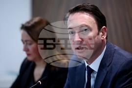 София (10 февруари 2022) В сградата на МРРБ се състоя заседание на междуведомствената работна група между България и Северна Македония за сътрудничество в областите инфраструктура, транспорт и свързаност. министърът на местното самоуправление на Република Северна Македония Горан Милевски. Пресфото - БТА снимка: Минко Чернев (ПБ)