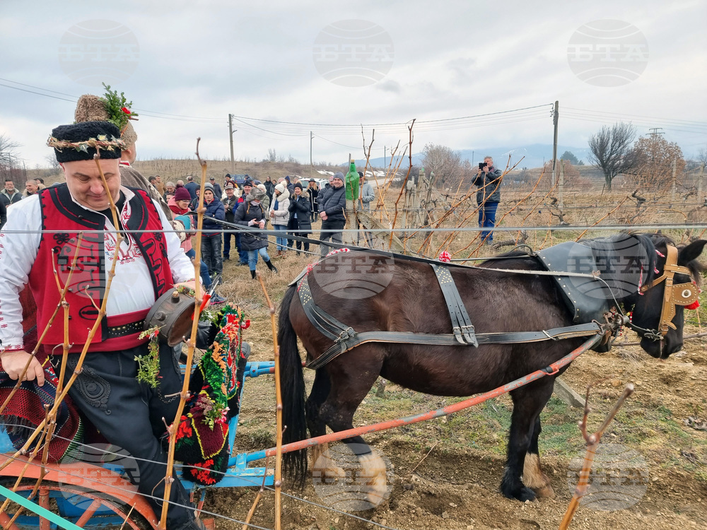 село Дъбрава (14 февруари 2022) За десета поредна година в благоевградското село Дъбрава се проведе Празник на виното, а жури от технолози определи носителят на титлата "Цар на виното". Короната и наградата връчи кметът на община Благоевград Илко Стоянов. По стара традиция край лозовите насаждения се извърши водосвет за здраве, а кметът на Благоевград Илко Стоянов, председателят на Общинския съвет Радослав Тасков и кметът на Дъбрава Методи Стоянов зарязаха лозята. В ритуала се включи и най-младият жител на Дъбрава, който участва в отглеждането на гроздето и производството на вино – 17-годишният Кирил Стефанов. Пресфото-БТА снимка: Десислава Велкова (ПБ)