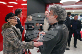 София (24 ноември 2022) Филмът „Фи 1.618" - първия пълнометражен филм на аниматора, илюстратор и режисьор Теодор Ушев, влиза в киносалоните от утре, 25 ноември. Днес се състоя официалната национална премиера на филма със снимки на червения килим и с участието на екипа. На снимката: Ирмена Чичикова (ляво).