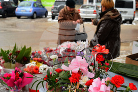 Исперих (7 март 2022) На сергии на открито в централната част на Исперих търговци предлагат разнообразни цветя и букети по повод утрешния Международен ден на жената - 8-ми март.