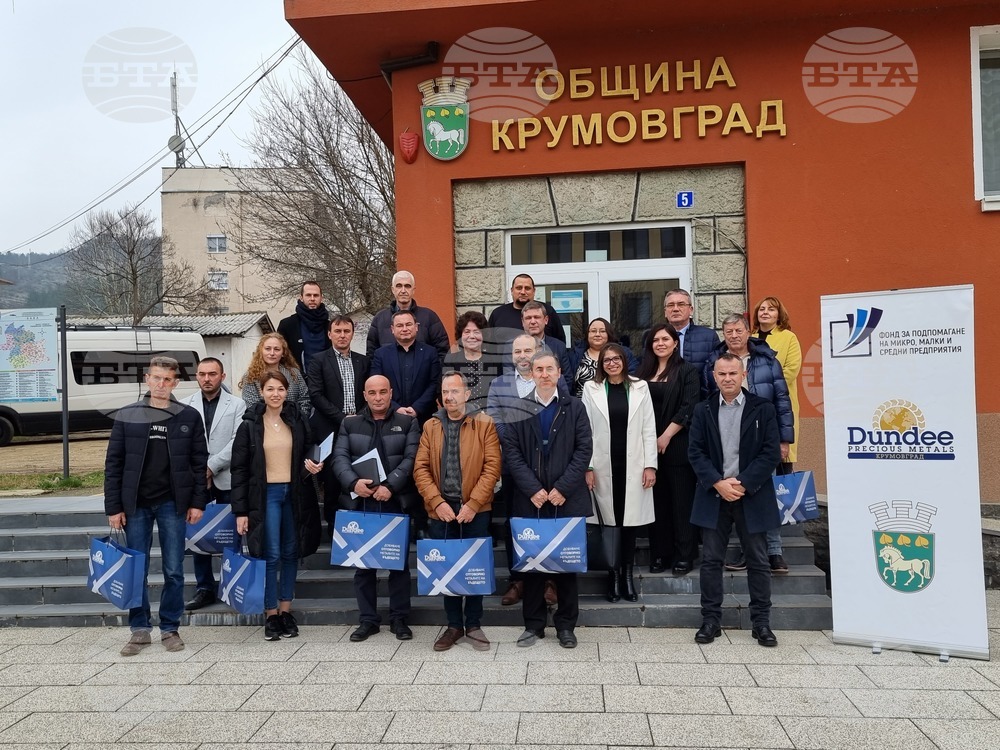Крумовград (31 януари 2023) Общо 15 проекта от 22 кандидатстващи на стойност 2 409 091лв. е одобрил Фонда за подкрепа и насърчаване на микро, малък и среден бизнес в община Крумовград през 2022г. Това бе отчетено на церемония по връчване на грамоти и сертификати на бенефициентите на избраните за подпомагане проекти през миналата година. Пресфото-БТА снимка: Валентина Стоева (ЕД)