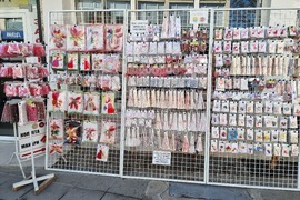 Разград (1 февруари 2023) Почти месец преди празника на Баба Марта търговците в Разград вече започнаха да предлагат мартеници. Хора, които имат деца, внуци, роднини и приятели в чужбина, първи избират червено-белите предвестници на пролетта, за да могат писмата да стигнат навреме. Пресфото - БТА снимка: Садет Кърова (ЕД)