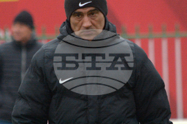 Варна (4 февруари 2023) На стадион "Тича" във Варна Черно море играе последната си контрола срещу Добруджа преди възобновяването на надпреварата в шампионата. Преди началото на мача официално бе представен отборът на "моряците" за пролетния дял от първенството. На снимката: треньорът на Черно море Илиан Илиев.