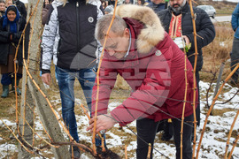 Село Дъбрава (4 февруари 2023) Празник на виното събра ценители, винопроизводители и лозари днес в благоевградското село Дъбрава. В лозята край селото беше извършен ритуал по зарязване а жури от три дами обяви тазгодишния „Цар на виното“. На снимката: Илко Стоянов – кмет на Община Благоевград.