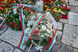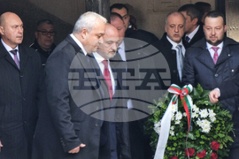 Скопие (4 февруари 2023) В двора на църквата „Св. Спас” в Скопие, където е гробът на Гоце Делчев, днес беше отбелязана 151-та годишнина от рождението му. От България, за да положат венци и цветя на гроба на Гоце Делчев, пристигнаха вицепремиерът по обществения ред и сигурност и министър на вътрешните работи Иван Демерджиев (втори от дясно), министърът на здравеопазването Асен Меджидиев и заместник министърът на МВР Венцислав Катинов (вдясно), както и представители на посолството на страната ни в Северна Македония.
