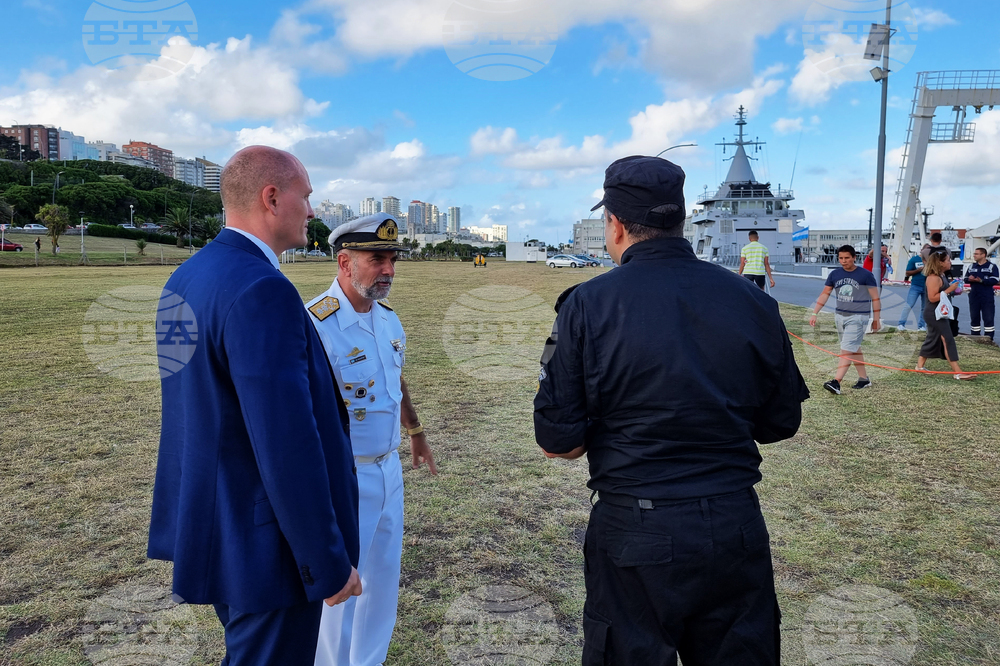 Мар дел Плата (4 февруари 2023) Българският военен научноизследователски кораб „Св. Св. Кирил и Методий“ (НИК 421) приема гориво и вода на пристанището в Мар дел Плата. Процесът се нарича бункироване. Аржентинското пристанище е втора междинна спирка на плавателния съд по пътя му към родната антарктическа база на остров Ливингстън. Екипажът на кораба бе посрещнат от военен оркестър на официална церемония. Сред официалните гости бе флотилен адмирал проф. д.в.н Боян Медникаров – началник на Висшето военноморско училище „Н. Й. Вапцаров“ във Варна, Н. Пр. Стоян Михайлов (в средата), посланик на България в Аржентина, контраадмирал Марсело Тарапов, генерален директор на обучението и подготовката на Военноморските сили на Аржентина и участник в 12 полярни експедиции до Антарктида, представители на аржентинските военноморски сили, както и учените от Българския антарктически институт. На борда на кораба се качиха Тарапов и Михайлов. На борда е и Хуан Николау, пилот, който до Ливингстън и обратно до Мар дел Плата ще помогне на екипажа да преведе кораба през полярните води.