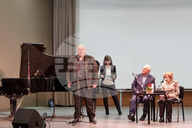 Габрово (5 февруари 2023) Със спектакъл в зала „Възраждане“ в Габрово бе представена новата книга на Милка Пурел „Какво даде Габрово и България на света“. Представянето започна с думи на Владилена Катевска, учител от Национална Априловска гимназия, а авторката Пурел бе представена от проф. Михаил Харалампиев, който написва и предговорът на книгата. На снимката: Иван Ковачев (вляво).