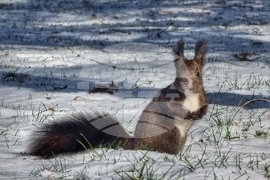 София (6 февруари 2023) В студения ден катеричка търси нещо за прехрана в снега.