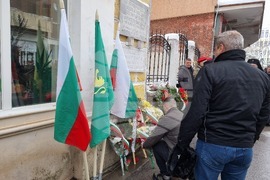 Враца (6 февруари 2023) С военни почести днес във Враца бе открита паметна плоча на генерал Кирил Ботев. Паметният знак е поставен на фасадата на къща „Иванка Ботева“. В тържественото откриване се включиха членове на инициативния комитет по изграждането на плочата, заместник-кметът на Враца Александър Владимиров, военнослужещи от Военно формирование 54 990, духовият оркестър към НЧ „Развитие – 1869“, граждани. Плочата бе осветена от митрополит Григорий в съслужие с врачански свещеници. Пресфото - БТА снимка: Мая Ценова (ЕД)