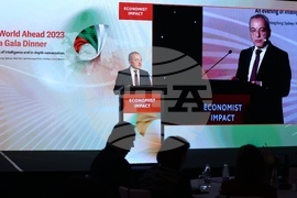 София (6 февруари 2023) Министър-председателят Гълъб Донев участва в събитието „Светът през 2023“, организирано от сп. „The Economist”. Премиерът Донев е основен говорител в панела на тема „Пътната карта на България за стабилност и растеж“. Събитието се провежда в Гранд Хотел Милениум. Пресфото - БТА снимка: Асен Тонев (ЕД)