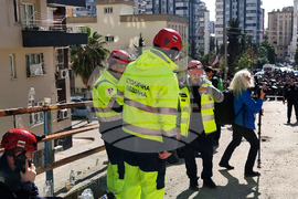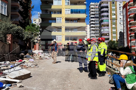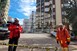 Адана (7 февруари 2023) Екипи на Дирекция аварийна помощ и превенция към Столична община и Планинска спасителна служба от България участват в спасителната операция в град Адана след земетресенията в Турция.