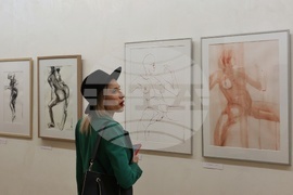 София (7 февруари 2023) Изложбата "Тя, жената" на художниците Вихрони Попнеделев, Ивайло Мирчев, Марко Марков и Николай Янакиев (на снимката) и скулпторите проф. Валентин Старчев и Марко Марков се откри в Музей-галерия "Анел".