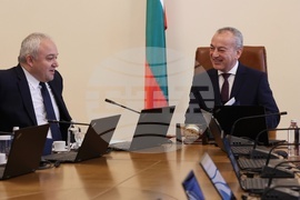 София (8 февруари 2023) Новоназначеното служебно правителство проведе днес първото си редовно заседание. На снимката: Иван Демерджиев, служебен заместник министър-председател по обществения ред и сигурност и служебен министър на вътрешните работи и министър-председателят Гълъб Донев (дясно).