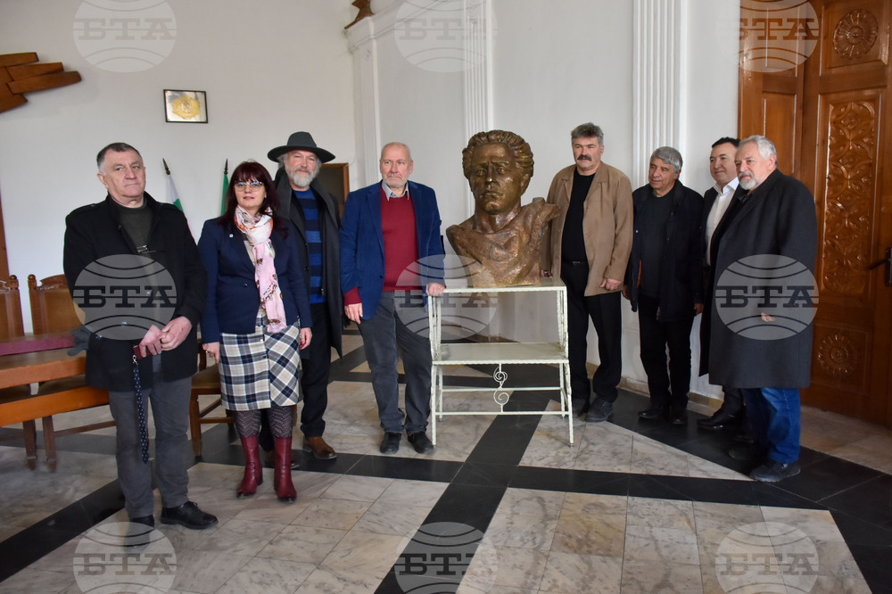 Карлово (8 февруари 2023) Бюст-паметник на Васил Левски, дело на скулптора Димитър Рашков, ще бъде открит през септември в молдовския град Тараклия. Паметникът бе представен на пресконференция в Обредния дом в Карлово с участието на Емил Кабаиванов, кмет на община Карлово, проф. Николай Овчаров, проф. Пламен Павлов, председател на Фондация „Васил Левски“, проф. Димитър Рашков, автор на статуята и Младен Станев, председател на Асоциацията на българите по света. Пресфото-БТА снимка: Боян Ботев (ПБ)