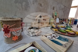 Ловеч (8 февруари 2022) Благотворителна изложба базар с изработени от природни материали и отпадъци предмети подредиха доброволците от Областния съвет на БЧК в Ловеч във фоайето на областната администрация. Инициативата е в подкрепа на деца с увреждания - с детска церебрална парализа (ДЦП) и различни синдроми. Със свои работи са се включили доброволци на БЧК, на БМЧК и на клуб „Усмивка“ към Профилираната природо-математическа гимназия. Изложени са пана, закачалки за ключове, чанти, несесери, органайзери. На снимката: директорът на БЧК - Ловеч, Цветомира Георгиева.
