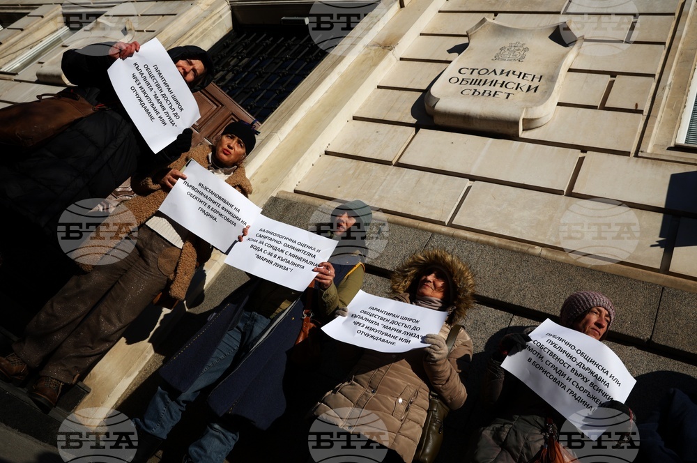 София (9 февруари 2023) Пред сградата на Столична община се провежда протест в защита на къпалнята в Борисова градина.