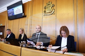 София (9 февруари 2023) Заседание на Столичния общински съвет се провежда в сградата на Столична община. В началото бе отдадена почит на жертвите на земетресението в Турция. Пресфото – БТА снимка: Минко Чернев(ЕД)