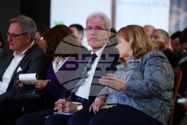 София (9 февруари 2023) България е домакин на международен форум за зелена енергия, част от кампанията "Да! На българската зелена икономика". Форумът "Бизнес и власт - заедно за чиста енергия" се провежда в хотел "Хаят Риджънси София". На снимката: Славка Бозукова (вдясно), журналист, главен редактор на „Стандарт”, Рамадан Аталай (втори от дясно), политик от ДПС.