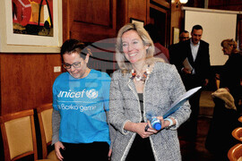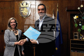 Бургас (10 февруари 2023) В Заседателната зала на Община Бургас официалният представител на УНИЦЕФ за България г-жа Кристина де Бройн и кмета Димитър Николов (дясно) дадоха старт на проект „УНИЦЕФ България и Община Бургас - заедно в подкрепа на уязвими деца и младежи“, финансиран в рамките на Основното споразумение за сътрудничество между правителството на Република България, Детския фонд на ООН и Програмата за страната за периода 2023-2027 г.