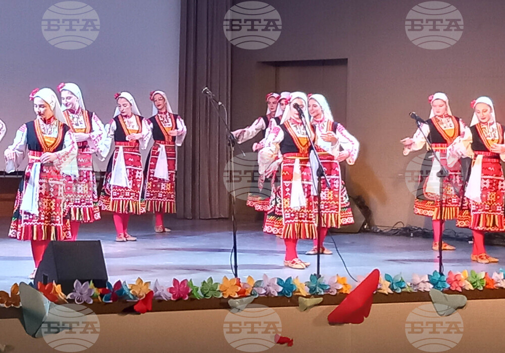 Габрово (11 февруари 2023) В габровската зала „Възраждане“ снощи бе четвъртото издание на благотворителния концерт „Ангелски сърца". Тази година целта на събитието е да се съберат средства, с които да се помогне на Гергана на 23 години от Габрово, която е диагностицирана с остеосарком. Зала „Възраждане“ събра повече от 400 желаещи да подкрепят благотворителната кауза на Младежки център и Община Габрово. На снимката: ФГ "Божурите".