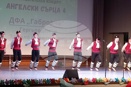 Габрово (11 февруари 2023) В габровската зала „Възраждане“ снощи бе четвъртото издание на благотворителния концерт „Ангелски сърца". Тази година целта на събитието е да се съберат средства, с които да се помогне на Гергана на 23 години от Габрово, която е диагностицирана с остеосарком. Зала „Възраждане“ събра повече от 400 желаещи да подкрепят благотворителната кауза на Младежки център и Община Габрово. На снимката: ДФА "Габровче".
