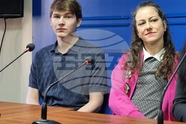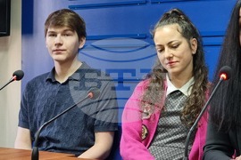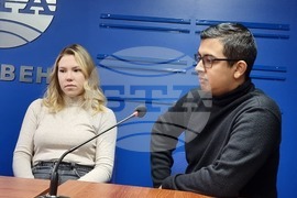 Сливен (13 февруари 2023) Камерният концерт "Разкази за любовта" ще потопи сливенската публика в приказна и интимна обстановка в Деня на влюбените. Това каза днес в Националния пресклуб на БТА в Сливен директорът на Симфоничния оркестър Кремена Оксенкруг. На снимката: Леонид Чернявский (ляво), Мартина Табакова (дясно). Пресфото-БТА снимка: Велина Василева (ЕД)