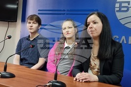 Сливен (13 февруари 2023) Камерният концерт "Разкази за любовта" ще потопи сливенската публика в приказна и интимна обстановка в Деня на влюбените. Това каза днес в Националния пресклуб на БТА в Сливен директорът на Симфоничния оркестър Кремена Оксенкруг. На снимката: Леонид Чернявский (ляво), Мартина Табакова, Кремена Оксенкруг (дясно). Пресфото-БТА снимка: Велина Василева (ЕД)