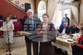 Ловеч (13 февруари 2023) Тържествено над 30 семейни двойки в Ловеч отпразнуваха своята „златна сватба“ на среща, организирана от Община Ловеч по повод Седмицата на брака в България от 7 до 14 февруари. Инициативата е на кмета Корнелия Маринова. Писмено и лично бяха поканени всички, които са сключили граждански брак през 1973 г. и нямат отразени разводи. Пресфото-БТА снимка: Даниела Балабанова (ЕД)